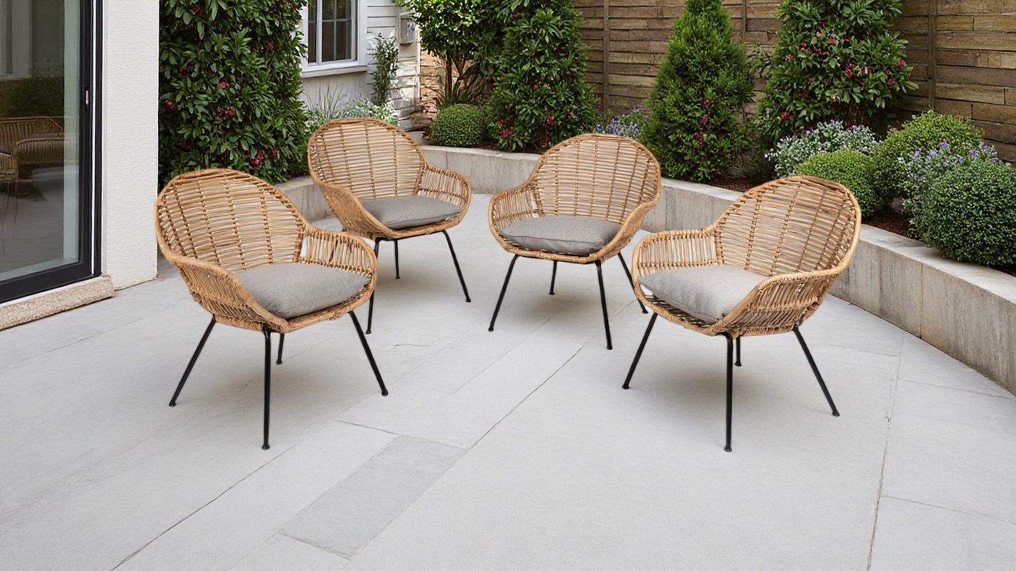 Set di sedie da esterno in rattan e acciaio 62x60x78 cm - naturale/nero/grigio - per giardino e terrazza - stile naturale con seduta imbottita